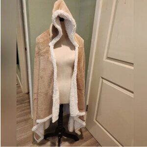 Wearable hooded throw is made in cozy Sherpa fleece, keeping you warm throughout the fall & winter seasons. Perfect for lounging, reading, watching tv, travel, and makes an awesome gift for everyone! Wrap it around yourself & throw on the hoodie for an extra layer or cozy + relaxation . Cozy up with a beautiful blanket from a female-founded brand in Los Angeles. This throw will be your new BFF at home. It even has a hood! How much more fitting can it get?