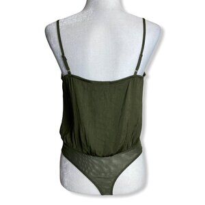 Socialite NEW Lace Trim Satin Bodysuit in Olive Green Women's Size S NWT