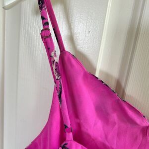 This vibrant pink floral top is perfect for any occasion. Featuring delicate spaghetti straps, it offers a stylish and comfortable fit. Ideal for pairing with jeans or skirts for a chic look.