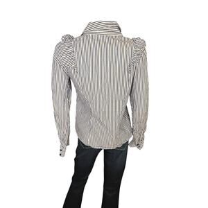 Socialite Nordstrom Blue White Striped Cotton Ruffle Button-Down Size Large