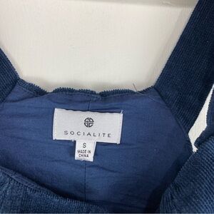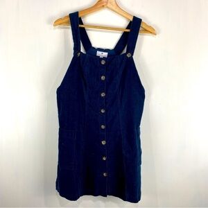 Socialite Overalls Corduroy Button Front Sleeveless Mini Dress Navy Size Small