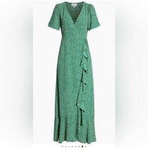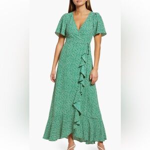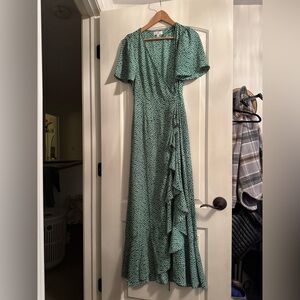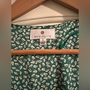 Socialite Printed Ruffle Dress Size Small in Green and Ivory. Never worn, like new condition.