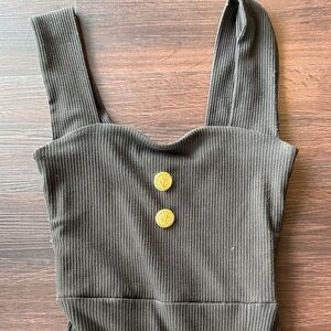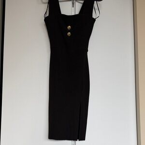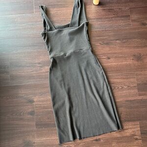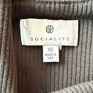 Socialite ribbed mini dress, XS. Slip on, stretchy, button accent, raw edge at the end with small slit on one side. Good preowned condition, no damage. NO trades. Bundle with other items for a discount.