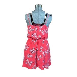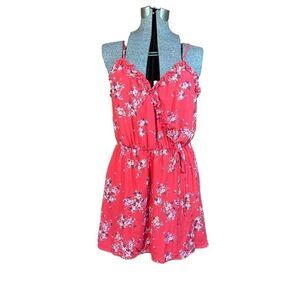 Socialite Ruffle Floral Print Mini Dress In Red Coral Multi Floral Size XL