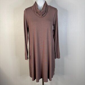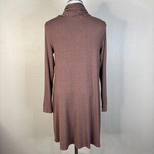 Socialite Shift Dress Medium Taupe Brown Cowl Neck Long Sleeve Pockets Stretch
