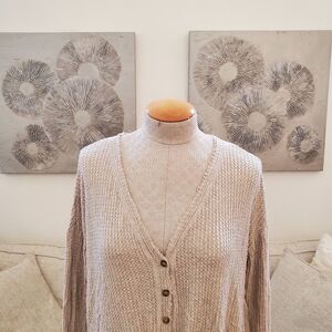 Socialite | Thermal Button Front Shirt - size Small in Oatmeal.