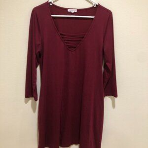 Socialite V Neck, A-Line Burgundy Dress