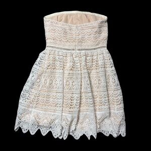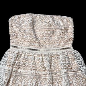 In good condition •Socialite •White •Tan/Beige Lining •Lace •Cutouts •Strapless •Bridal •Bachelorette •Honeymoon •Date Night •Graduation •Cocktail •Party