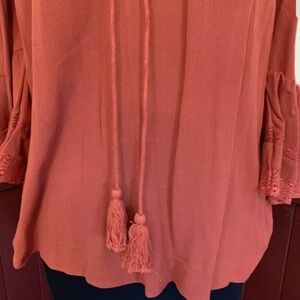 Socialite Womens Blouse Size Medium Orange Cold Shoulder Boho Tassel L/S. Smoke free pet free home. Ships fast
