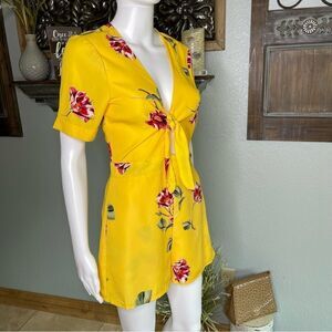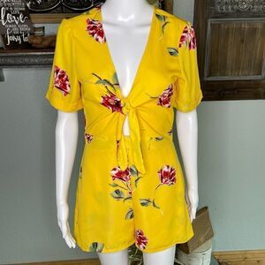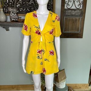 Socialite Yellow Floral Tie Front Bodice Romper Size Small
