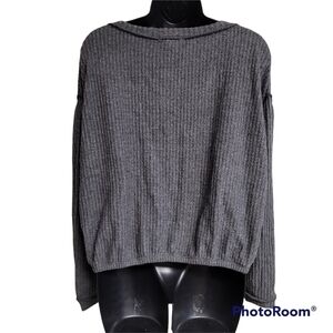 Socialite oversized charcoal grey drop shoulder waffle knit tie front top