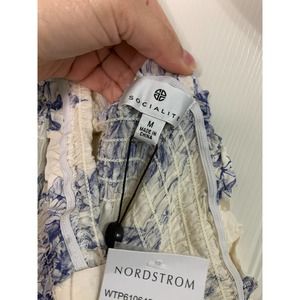 Socialite ivory blue flor off shoulder long sleeve blouse size Medium NWT
