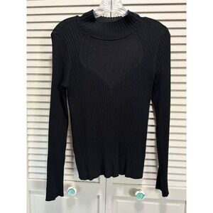 Society 212 Turtleneck Sheer Chest Neck Sweater Long Sleeve Size L Ribbed