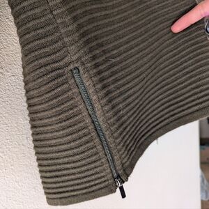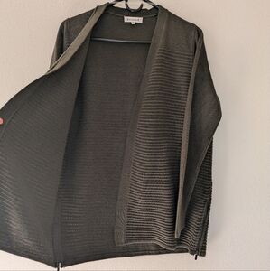 -Comfy cardigan with ribbed detail in the front and zippered accents on the side for dimension or to add space to accommodate larger sizes