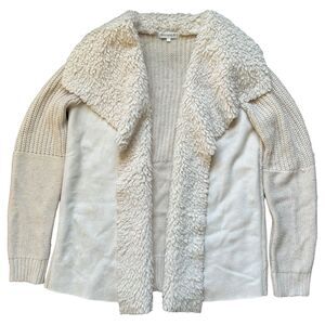 Society 8 Womens Large Jacket Open Front Fleece Collar Faux Suede & Knit Sweater