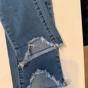 Trendy ankle-length jeans with a distressed finish. Perfect for casual wear.