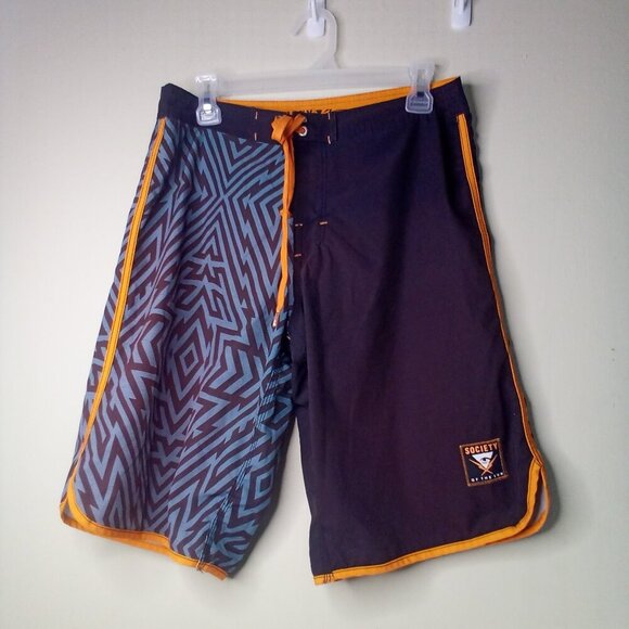 Society Of The Sun Swim Trunks Men 32 Board Shorts Brown Orange Blue