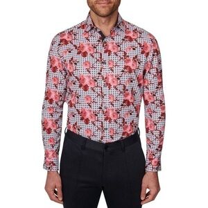 Society of Threads Men Slim Fit Floral Performance Dress Shirt Gray Size M, red