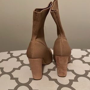 Tan sock booties. Heel: Around 3-4 inches. Brand new.