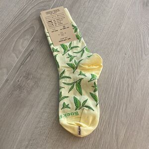 Sock Fancy Crew Socks NWT yellow/green leaves pattern & pink/pink S/M 2 pairs