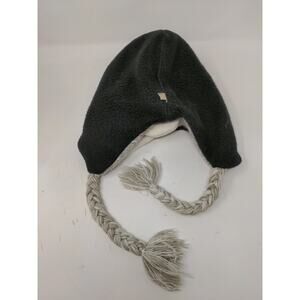 Sock Monkey Knit Beanie Hat Cap Button Eyes 100% Acrylic Gray White