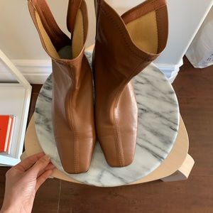 Leather sock boot that is on trend. Extremely comfortable and look so chic! In good condition.