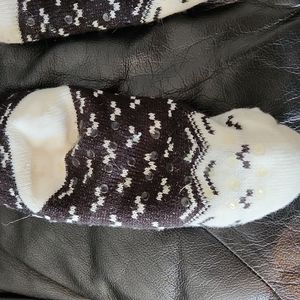 These are a pair of calf high winter sock slippers with the non skid dots on the bottom. Never worn. Smoke free home. No rips, tears or stains.