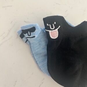 Sockopath Low-Cut Socks with Fun Expression Embroidery (2 Pairs), Size: 6-12-NWT