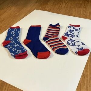 Four cute Holiday Stockings..NWOT. Get ready for the upcoming holidays. Solid blue with red heel is 13” from top to bottom..the other 3 are 12” from top to bottom. Just a cute addition to your wardrobe.