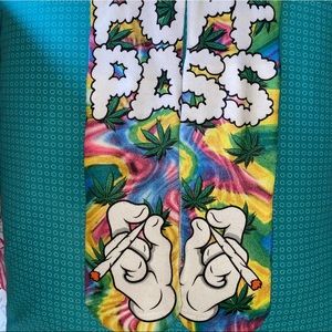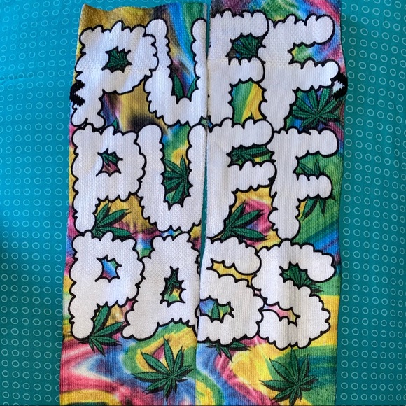 Weed design socks Written “puff puff pass” in the front and back Never worn