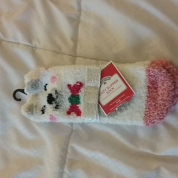 Cute fuzzy holiday slipper socks 4-10 Never work. Purchases are shipped on Saturdays.