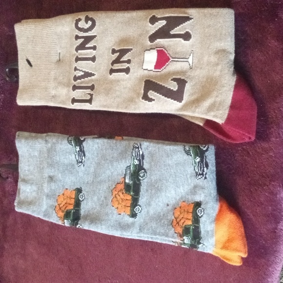 long socks .. sock with truck on it size 6-12 and sock with wine glass on it 10 -13 ..10 dollars for all 2 pair of socks