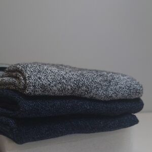 Keep your feet warm and dry on the jobsite with this 3-pack of socks in light gray and navy blue color combo.