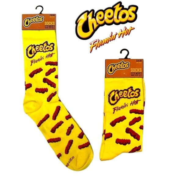 Socks Cheetos Flaming Hot Novelty Mid Calf Shoe Size Women 7-13 Unisex Men 6-12