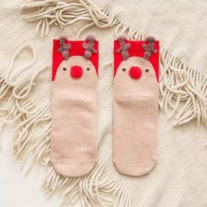 Socks cotton red reindeer 1pr Christmas red cute red nose holidays sock