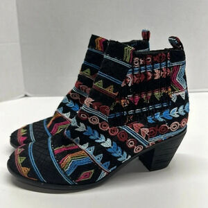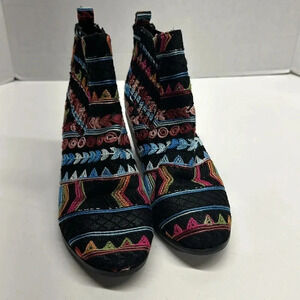 Socofy Ankle Boots Heeled Boot Shoes Embroidered Black Colorful Size 38 US 7