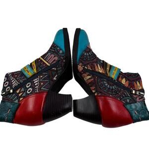 Socofy Retro Boho Multicolor Leather Stretch Fabric Booties Women's 38/7-7.5.