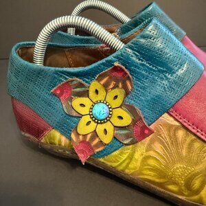 Socofy Women's Booties 9.5 (40) Rainbow Leather Flower Accent Turquoise Stone