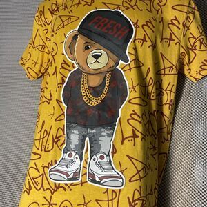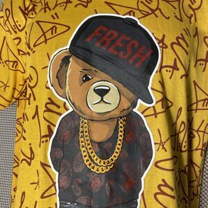 Socwatees T-Shirt M Geek Chained Bear All over Graphic Tee Hustle Short Sleeve
