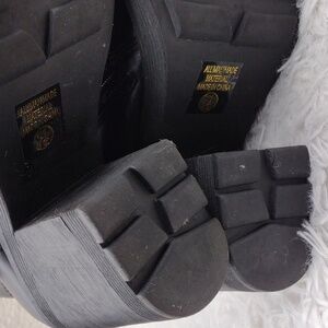 Soda Women's Black Faux Leather Dual Side Zipper Ankle Strap Buckle Detail High Stacked Heel Ankle Moto Boots. Man Made Textured Sole. Fabric Lining. Faux Leather Footbed. Light Upper Leather Markings. Upper Lining Scuff Mark. Light Gold Plate Buckle Residue. Sole Marks. Measurement approx. Heel: 3.5". Size 7.5 Color May Vary Due To Lighting.