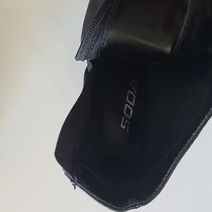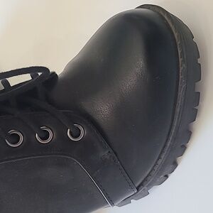 Elevate your fashion game with these lace-up ankle boots from Soda. Inspired by the military, this combat-style boot features a stacked heel, giving you a comfortable and stylish option for any occasion. The faux leather upper material is perfect for those who love a touch of edginess in their outfits. With a size of 7M, these boots are perfect for women who want to make a statement with their footwear. The black color and lace-up closure make these boots versatile enough to pair with any outfit. Whether you're running errands or dressing up for a night out, these Soda Chalet boots will be the perfect addition to your wardrobe.