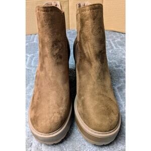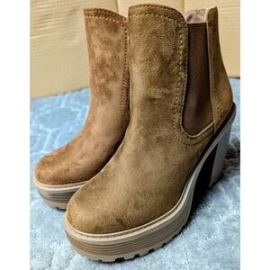 Soda Cognac Chunky Platform Booties WOMENS 10 faux suede 4in heel ankle boots