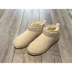 Soda Cream Sherpa Platform Ankle Booties Womens Size 7.5