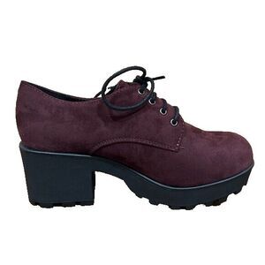Chic dark red platforms by Soda. Features a lace-up front and sturdy heel. Ideal for making a statement.