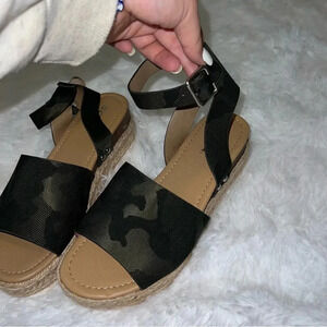 Soda Espadrille Wedge Camouflage Platform Sandal with Ankle Strap size 9