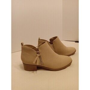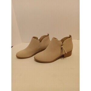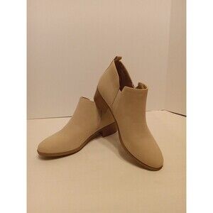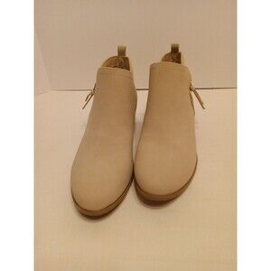 Soda Faux Suede Beige Low Heel Ankle Boots Size 10 Bootie Shoes NWOT. Heels about 2 inches. Zip sides and elastic for easy pull on. No scuffs. Smoke free and pet free. See my other items. Thanks for your support.