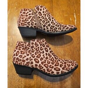 Soda Leopard Print Heeled Booties Size 7 Zip Up
