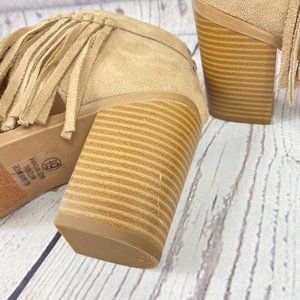 Soda Peep Toe Fringe Bootie Khaki Size 6.5