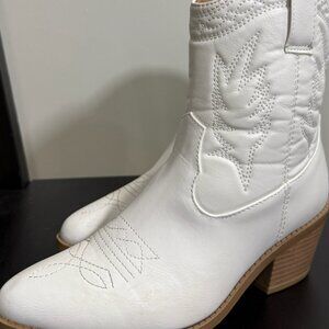 Soda Picotee (Amazon) white cowgirl booties, Size 6, Worn once, Good condition