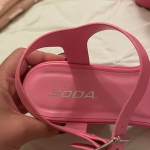 Bold pink platform heels with adjustable strap. Elevate your style effortlessly. size 7.5/8. worn once.
